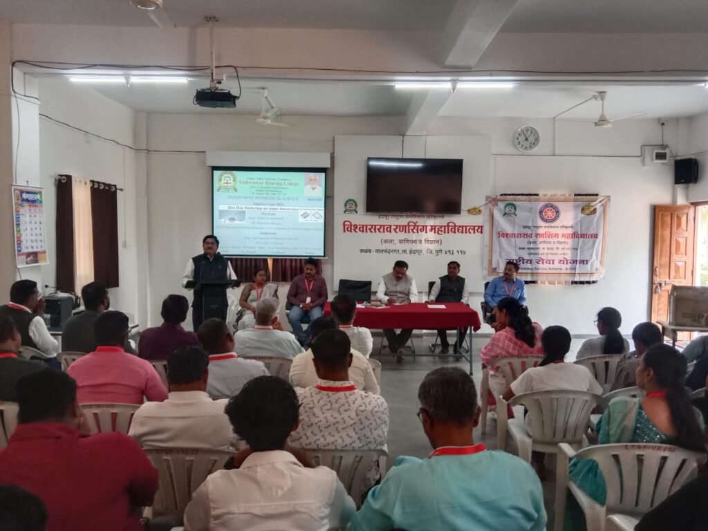 रणसिंग महाविद्यालयात मतदान जनजागृती कार्यशाळा संपन्नइंदापूर तालुका प्रतिनिधी गणेश धनवडेइंदापूर तालुका ग्रामविकास प्रतिष्ठानचे विश्वासराव रणसिंग महाविद्यालयात, राज्यशास्त्र विभाग व राष्ट्रीय सेवा योजना विभाग यांच्या संयुक्त विद्यमाने दिनांक 02 फेब्रुवारी 2026 रोजी मतदार जनजागृती विषयक कार्यशाळेचे आयोजन करण्यात आले होते. या कार्यशाळेचा मुख्य उद्देश विद्यार्थ्यांमध्ये व नागरिकांमध्ये लोकशाही मूल्ये, मतदानाचे महत्त्व तसेच जबाबदार मतदाराची भूमिका याबाबत जागरूकता निर्माण करणे हा होता. या कार्यक्रमाचे प्रास्ताविक राज्यशास्त्र विभाग प्रमुख प्राध्यापिका ज्योत्स्ना गायकवाड यांनी केले. त्यांनी लोकशाही सुदृढ ठेवण्यासाठी प्रत्येक नागरिकांची मतदानातील सहभागाची भूमिका महत्त्वाची आहे. आणि कर्तव्य म्हणून ते पार पाडले पाहिजे. या कार्यशाळेच्या पहिल्या सत्रामध्ये कला,वाणिज्य व विज्ञान महाविद्यालय इंदापूरचे राज्यशास्त्र विभाग प्रमुख प्रा.डॉ. दिगंबर बिरादार यांनी देशाच्या लोकशाहीला मजबूत ठेवण्यासाठी प्रत्येक सजग नागरिकांनी आपल्या सदसद विवेक बुद्धीचा वापर करून मतदान केले पाहिजे. तरच देशाच्या विकासासाठी योग्य असा प्रतिनिधी निवडता येईल. आरोग्यदृष्ट्या सजग नागरिक आणि लोकशाही प्रक्रियेमधील सक्रिय सहभाग यांचा परस्पर संबंध त्यांनी अधोरेखित केला. दुसऱ्या सत्रामध्ये प्रा. रवि गायकवाड यांनी इलेक्ट्रॉनिक वोटिंग मशीन (EVM) विषयी सविस्तर माहिती दिली. EVM ची कार्यपद्धती, मतदानाची प्रक्रिया व सुरक्षितता याबाबत त्यांनी सखोल मार्गदर्शन केले. यानंतर उपस्थितांना मतदार जागृती संदर्भातील प्रतिज्ञा देण्यात आली. डमी बॅलेट मशीनद्वारे नवीन मतदार विद्यार्थ्यांकडून प्रात्यक्षिक करून घेऊन मतदान प्रक्रिया कशी पूर्ण केली जाते याविषयी माहिती दिली. या प्रसंगी बोलताना महाविद्यालयाचे उपप्राचार्य प्रा. ज्ञानेश्वर गुळीग यांनीही विद्यार्थ्यांना निवडणूक प्रक्रियेमध्ये प्रत्यक्ष सहभागी होऊन मतदान करावे असे आवाहन केले. या कार्यक्रमाचे अध्यक्षस्थान महाविद्यालयाचे प्राचार्य डॉ. अशोक काळंगे यांनी भूषवले.याकार्यशाळेसाठी उपप्राचार्य प्रा. ज्ञानेश्वर गुळीग,डॉ. प्रशांत शिंदे , प्रा.गणेश मोरे, प्रा. डॉ. रामचंद्र पाखरे, प्रा.राजेंद्र कुमार डांगे, प्रा.डॉ.विजय केसकर, प्रा.डॉ.विलास बुवा,प्रा. विनायक शिंदे तसेच इतर प्राध्यापक व प्राध्यापकेतर कर्मचारी, विद्यार्थी उपस्थित होते. या कार्यक्रमाचे सूत्रसंचालन प्रा.धुळदेव वाघमोडे यांनी केले, तर आभार प्रा. रवि गायकवाड यांनी मानले. या कार्यशाळेची सांगता राष्ट्रगीताने करण्यात आली.