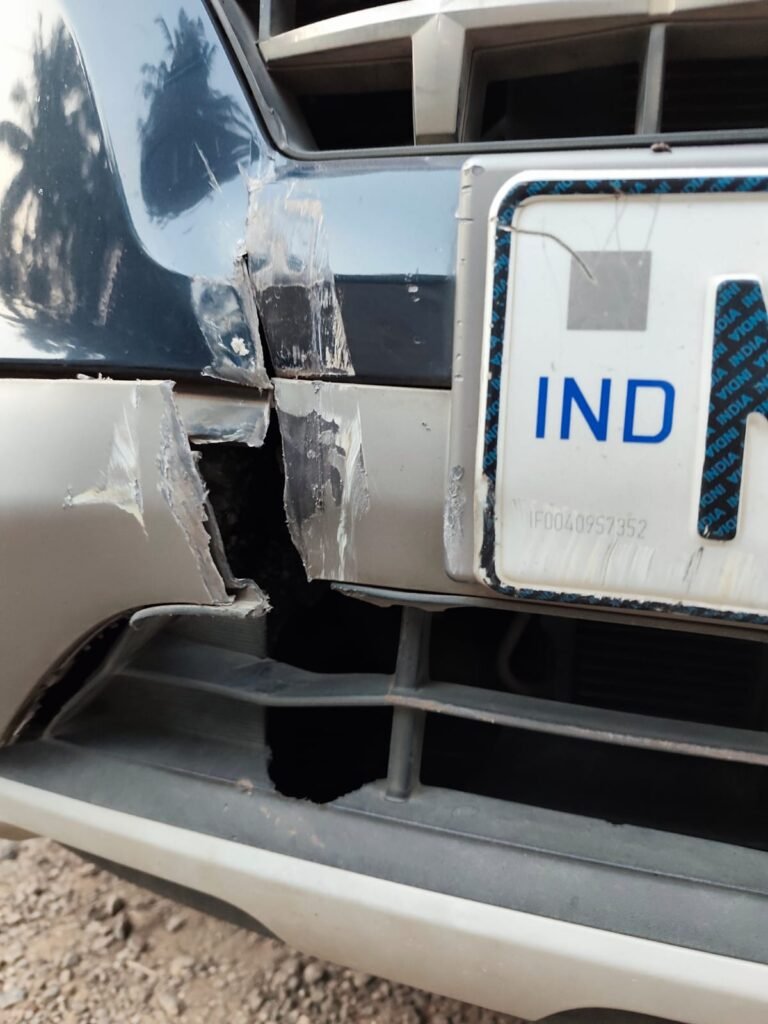 टेंपो चालकाने राजेंद्र घरत यांच्या वाहनाला दिली धडक.फोर व्हीलर वाहनाचे आर्थिक नुकसान.नुकसान भरपाई देण्याची व आरोपी वर कडक कारवाई करण्याची मागणी.टेम्पो गाई गुरे चोरण्यासाठी आल्याचा नागरिकांना संशय.